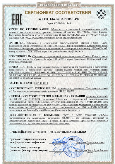 - Системы XL PIPE эксплуатируются от источника переменного тока 50 Гц и напряжения 220 В. Подключение через терморегулятор обязательно.